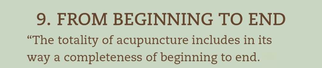 Chapter 9 of the “Ling Shu” or Spiritual Pivot – a Chinese medicine classic of Acupuncture, one of the earliest classics of Chinese Medicine, said to be compiled in the 1st Century, explains the beginning, the middle and the end.