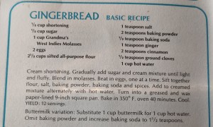 This is a fantastically delicious recipe for gingerbread from one of my vintage cookbooks published in 1967, called “Molasses Flavour – for modern cooks-“. It’s published by the Boston Molasses Company, a division of SuCrest Corporation, New York. Obviously some kind of advertising pamphlet but full of disgusting Molasses recipes including with frankfurts and as a base for BBQ sauce.