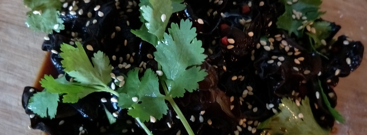Woo! Recipe time again! In TCM food medicine theory, Spring time means we can slowly begin introducing cooler foods to our diets. As long as they are alchemically balanced with a reasonable combination of elements which have cold, cool, warm and hot natures and properties, they are healthy and delicious too. Following are instructions for making an amazing dish they eat in mainland China, made of really odd looking but *fantastic* tasting black cloud fungus. “OMG! Fungus! How gross! You can’t be serious!” I hear you say, already. Well, just go get the traditional Chinese ingredients from the lovely Lisa at This Little Piggy Market, and give this dish a try. It’s REALLY yummy and fully worth the 15 minutes of your life that it takes to make it.
